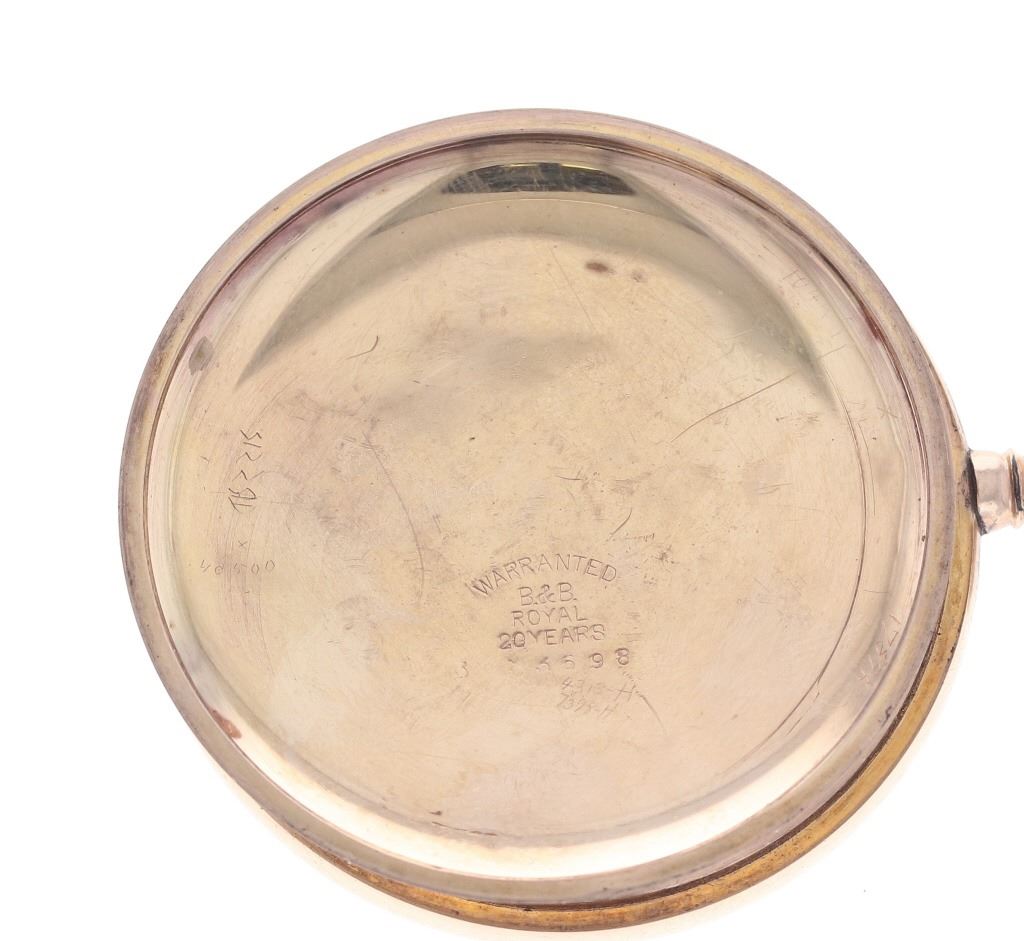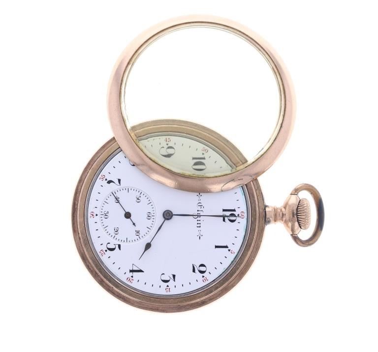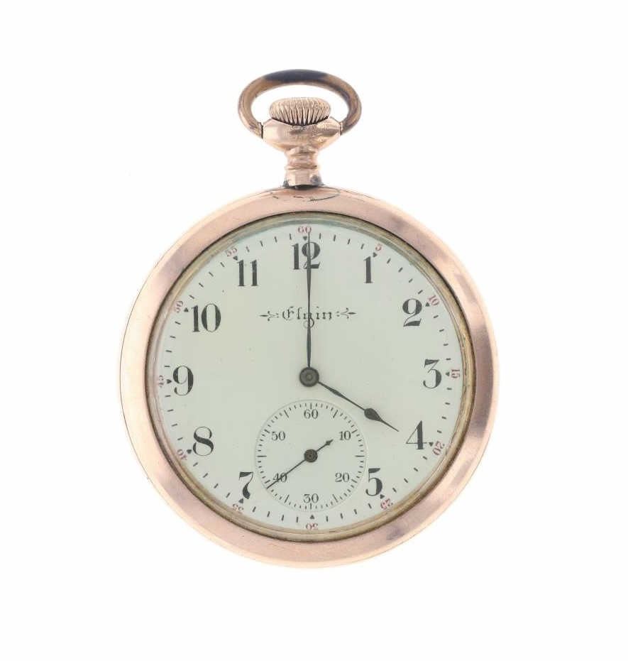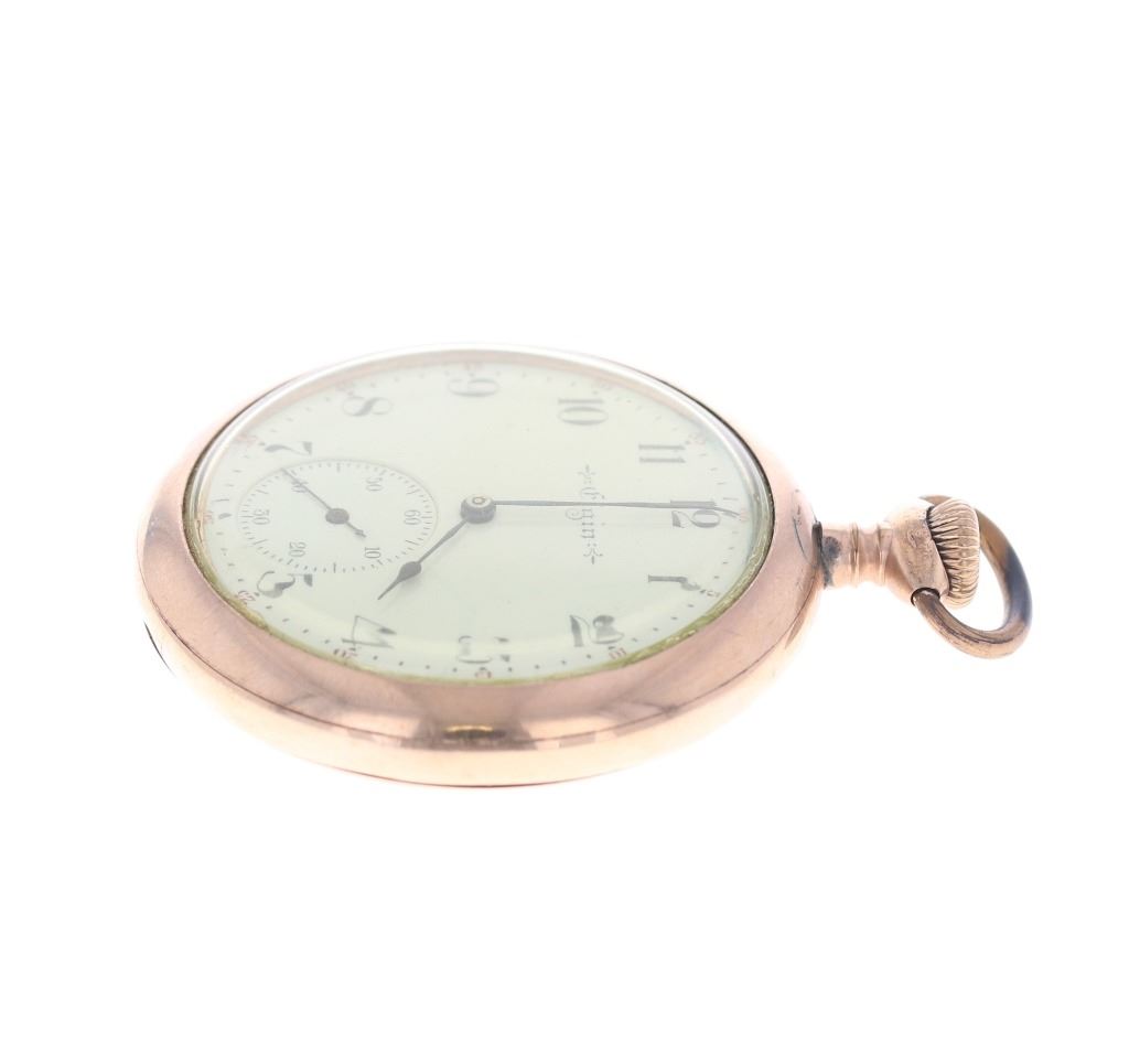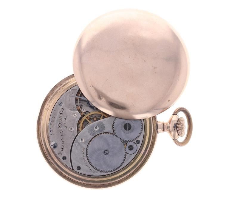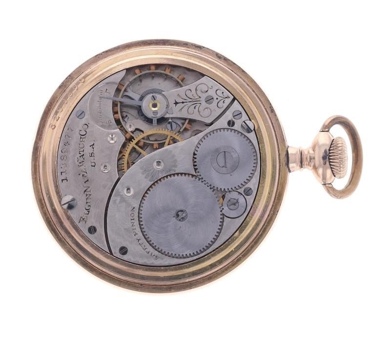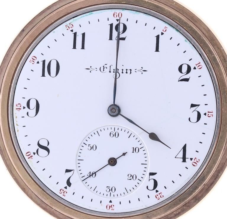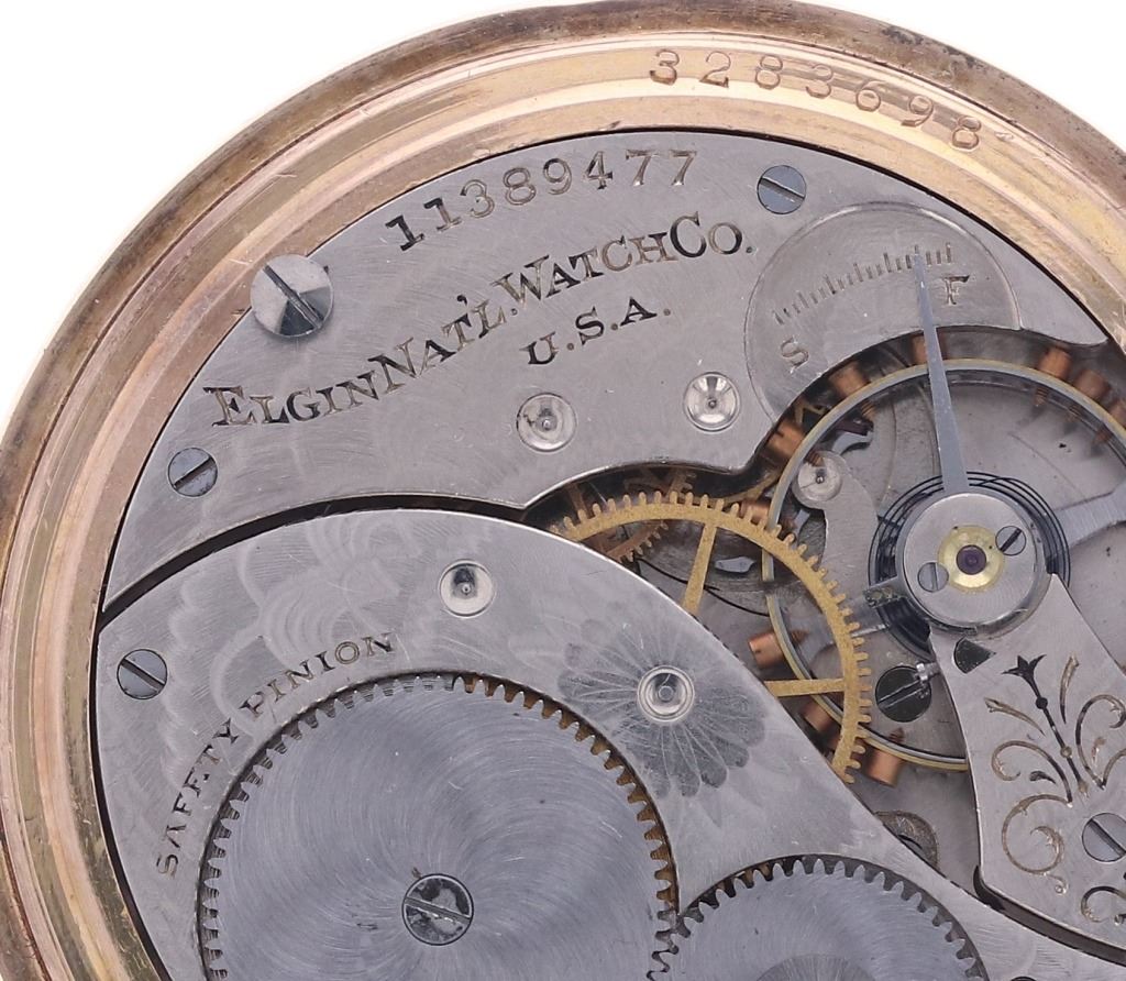 Featured in this lot is this Elgin Watch Co. 11J grade 13 pocket watch circa 1883. The watch features a wonderfully and professionally crafted gold filled construction that shows 11 Jewels. The watch face is marked Elgin. The lid backing to the case is marked as follows: Warranted - B & B - Royal - 20 Years - 3253598. The mechanism is marked as follows: 11389477 - Elgin Watch Co. U.S.A. - Safety Pinion. The condition of this pocket watch is good with no obvious signs of damage and shows good overall condition. The measurements of this pocket watch is 2 1/2" x 1 7/8" x 3/8".