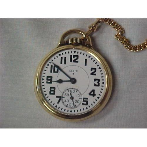Elgin Watch with Chain and Masonic Emblem. This watch was made form 1937-1940. It has 23 jewels and is a size 16. 10k gold filled. It is in very good condition, still working. It has however been repaired and the original part(copper coil) has been saved.