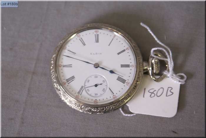 Elgin size 16, 15 jewel Ser 16691025, silveroid case, open face, working at time of cataloguing