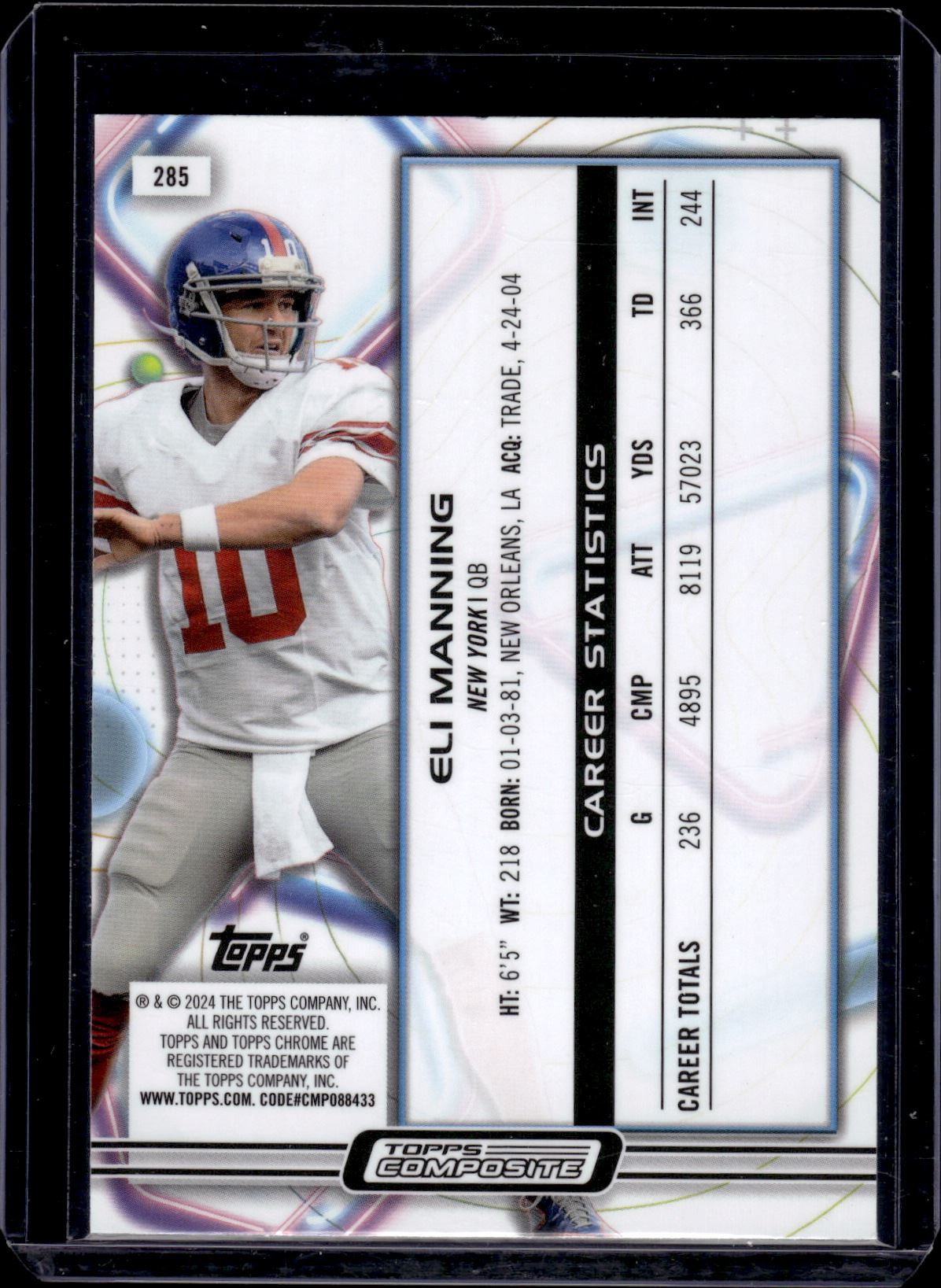Eli Manning Nucleus Refractor 2023 Topps Composite Chrome #285
