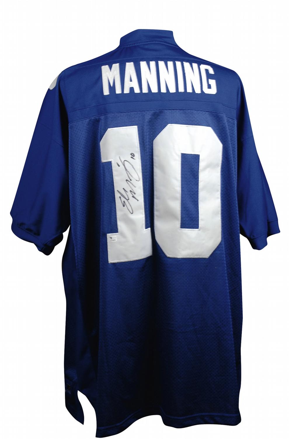 Official Reebok New York Giants football jersey, with sewn on letters and numbers, signed in black felt tip on the number on the back. In very fine condition, with an authentication label affixed to number.