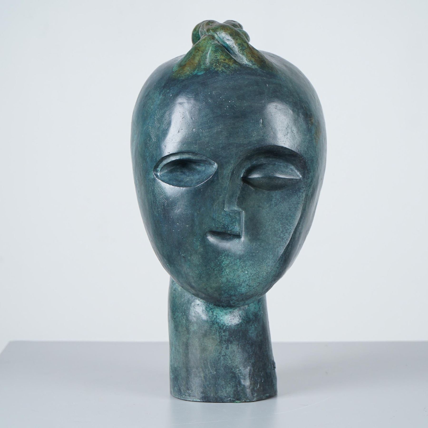 Eli Ran, Bronze Sculpture, Abstract Female Head, Signed