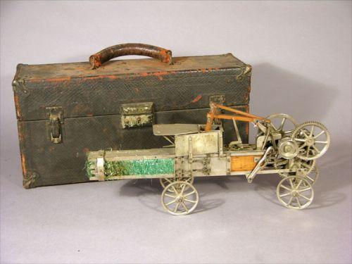 Eli Salesman Sample Hay Bailer, from the family of the Collins Plow company. The Collins Plow Company introduced the Eli Bailing Press in the late 1880s in Mendon, Illinois and later moved to Quincy. They were premier manufacturers of farm implements and set up a large display a the 1904 Worlds Fair in St. Louis, MO. Comes with original carrying case. This piece is extremely well made and in excellent condition. One of only seven made all different. 16 1/2 X 7 1/2 X 4 1/2 inches.
