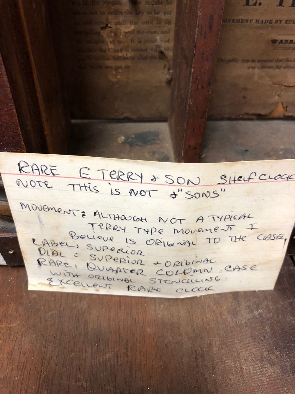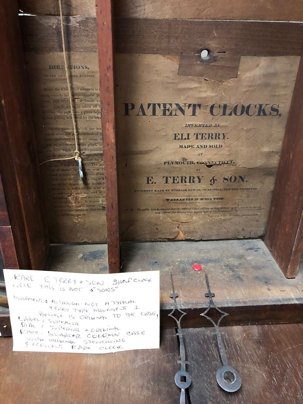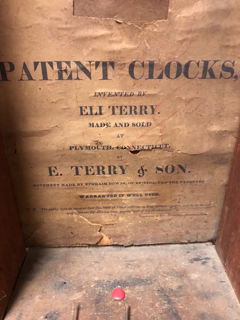 Eli Terry & Son, Plymouth, CT wooden works column clock, with 30 hour weights, comes with dial,