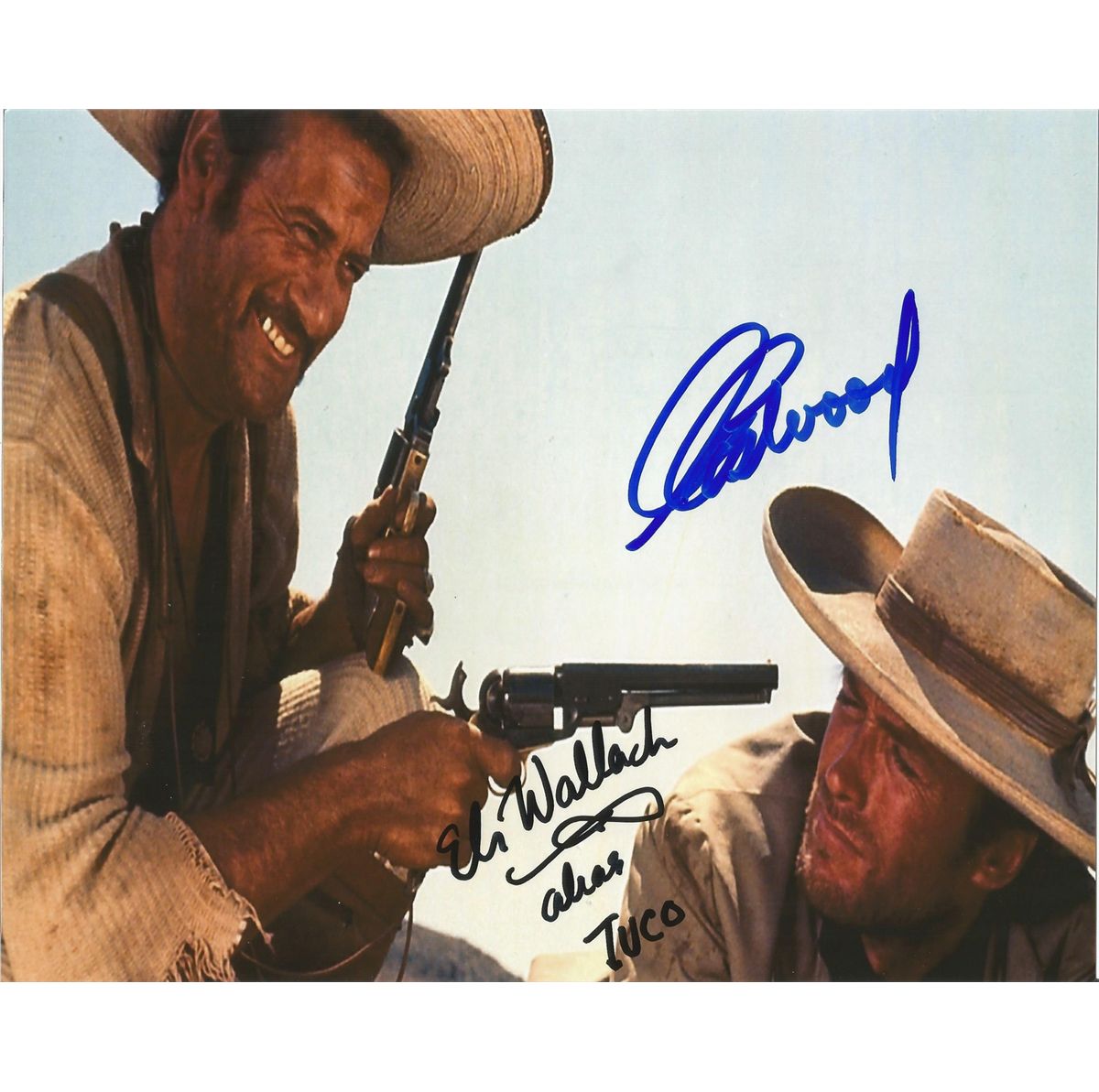 Signed color 8x10 by Clint Eastwood and deceased costar Eli Wallach who added his character name Tuco