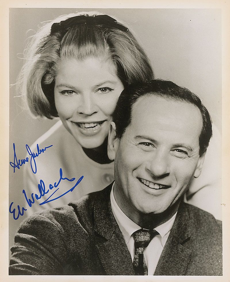 Glossy 8 x 10 photo of the couple posing together, signed in blue felt tip by Eli Wallach and Anne Jackson. In fine condition, some mild toning to borders.