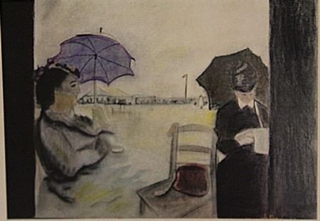 in the manner of Eugene Boudin "Eliane with Umbrella" pastel on paper circa.1910, private collection Approx. 19x13in. Boudin one of the first French landscape painters to paint in the open air, directly from nature. His many beach scenes directly link the carefully observed naturalism of the early 19th century and the brilliant light and fluid brushwork of late 19th-century Impressionism.