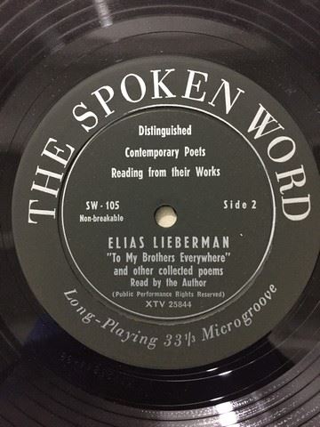 Elias Lieberman Signed "Contemporary Poetry Series, (1958) 'The Spoken Word" Vinyl