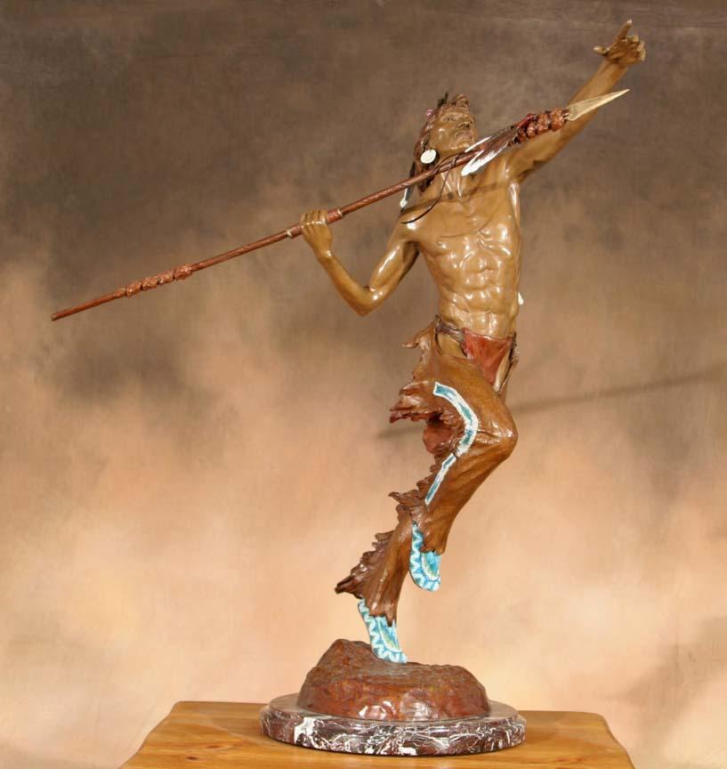 Elie Hazak (b.1945). Blackfoot Hunter, 1993. Bronze #21/100. 32" x 32" x 10". (est $2,500-3,500). For condition reports please visit: www.auctioninsantafe.com/cr2011.pdf