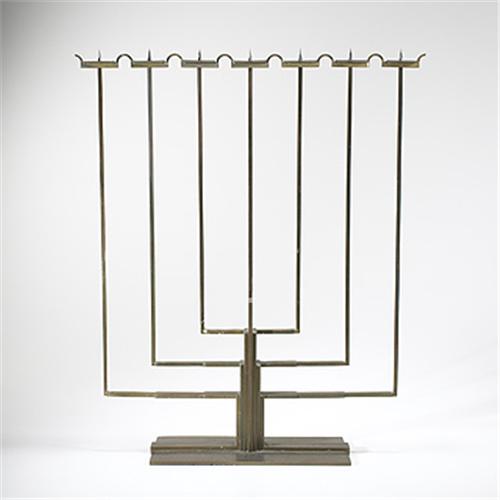 Eliel Saarinen and J. Robert F. Swanson candelabrum Cray USA, 1935/1947 brass 18"w x 6"d x 25"h This candelabrum was designed by Swanson in 1935 for the interior of Gordon Menselssohn's home in Bloomfield Hills, Michigan. Over a decade later, Swanson, his wife, Pipsan Saarinen Swanson, and Eliel Saarinen created the Swanson Saarinen Group and included this design in their line of furnishings for the modern home. Literature: Cranbrook Art Museum: 100 Treasures, Wittkopp, pg. 108