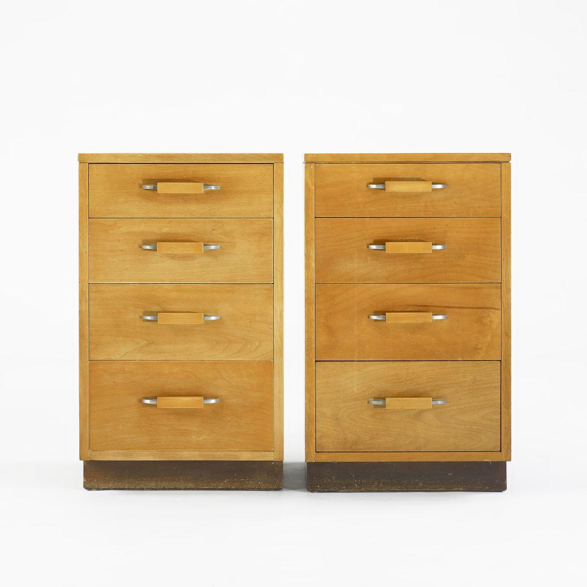 Signed with applied manufacturer's label to drawer of each example: [Johnson Furniture Co. Grand Rapids, Mich.].