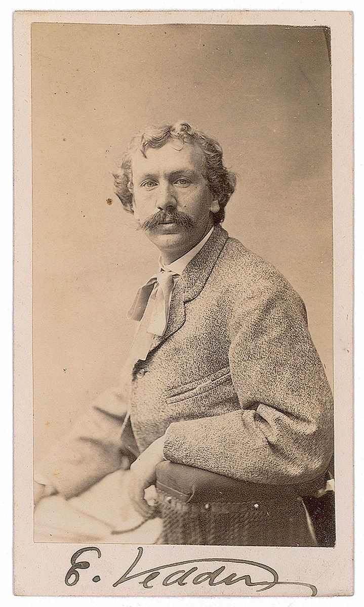 American symbolist painter, book illustrator, and poet (1836–1923) who is best known for his artwork in Edward FitzGerald’s translation of The Rubaiyat of Omar Khayyam. Rare 2.5 x 4.25 carte-de-visite half-length portrait of the artist, neatly signed in the lower border in black ink, “E. Vedder.” Published by Marshall photography of Boston. In fine condition.