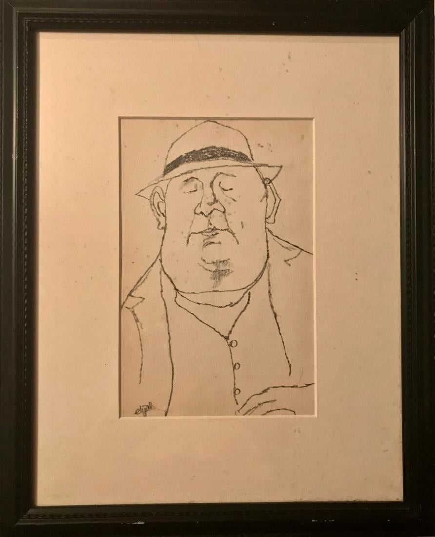Original pencil drawing signed and titled by the artist Elijah Silverman: Subway Man Snoozing ca.1950s (view info on verso).