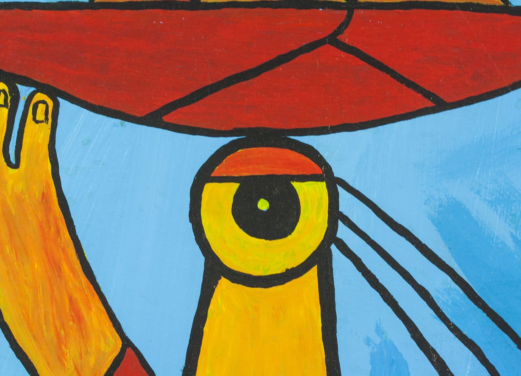 Oil on canvas, framed. Featuring a surrealist portrait. Signed OnhErE on the lower left corner. Attributed to Elisha Ongere (20th Century, Kenyan). 44 x 38.5 cm (17.5 x 15 in), Frame: 53 x 47.5 cm (21 x 18.75 in). PROVENANCE: This item has limited provenance from a Southern Ontario estate