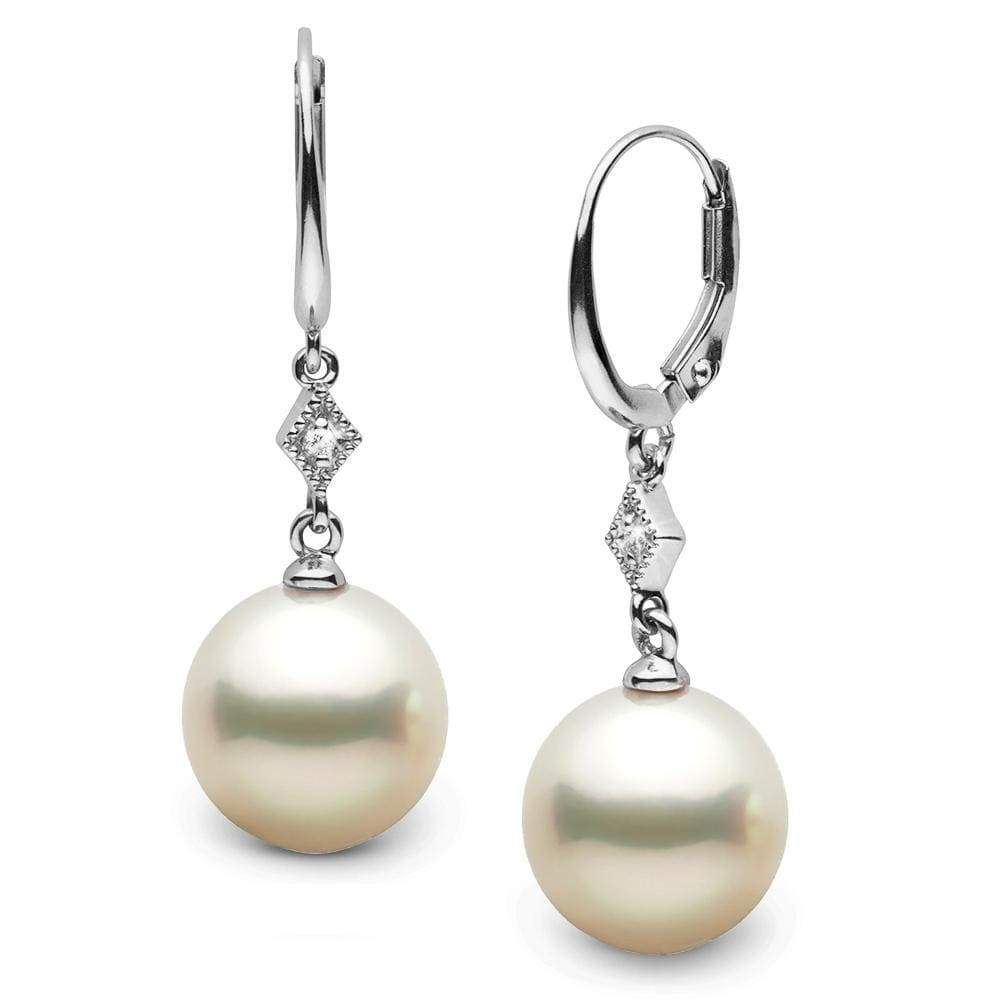 Elite Collection White Freshwater Pearl and Diamond Aerie Dangle Earrings