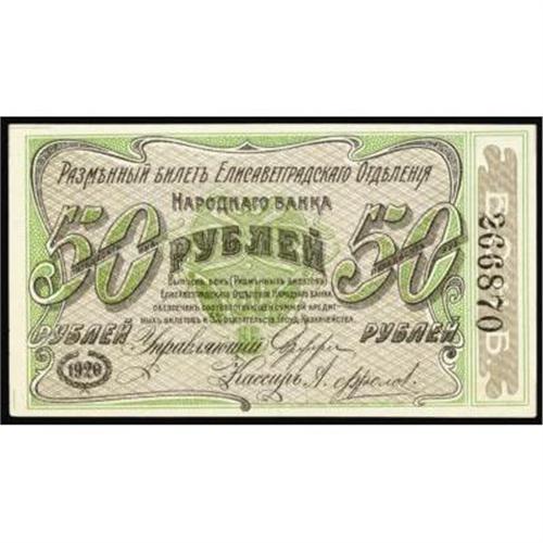 <style type="text/css"> body, td, th { font-family: Arial, Helvetica, sans-serif; font-size: 12px; color: #482424; margin: 0px; padding: 0px; } #header { background-image: url(http://www.bowersandmerena.com/ebay/images/template_v3_01.gif); clear: both; background-color: #590303; border-top-width: 2px; border-top-style: solid; border-top-color: #B38C4F; } #header #header_wrapper { height: 75px; clear: both; width: 800px; margin-right: auto; margin-left: auto; background-image: url(http://www.bowersandmerena.com/ebay/images/template_v3_03.gif); background-repeat: no-repeat; background-position: right; color: #F3EDCC; } #header #header_wrapper #header_logo { float: left; height: 75px; width: 444px; background-image: url(http://www.bowersandmerena.com/ebay/images/template_v3_02.gif); background-repeat: no-repeat; font-size: 10px; text-transform: capitalize; color: #B38C4F; } #header #header_wrapper #header_right { float: left; height: 75px; width: 356px; text-align: right; } #header #header_wrapper #header_right #headerLoginBtn { margin-bottom: 30px; } #header #header_wrapper #header_right input#txtSearch { color: #B49056; border: 1px solid #B49056; width: 175px; padding-top: 3px; padding-right: 3px; padding-bottom: 4px; padding-left: 3px; } #nav { height: 37px; background-image: url(http://www.bowersandmerena.com/ebay/images/template_v3_05.gif); clear: both; } #nav #nav_wrapper { height: 35px; width: 800px; margin-right: auto; margin-left: auto; border-left-width: 1px; border-left-style: solid; border-left-color: #B38C4F; } #nav #nav_wrapper a { padding-right: 15px; padding-left: 15px; border-right-width: 1px; border-right-style: solid; border-right-color: #B38C4F; height: 25px; padding-top: 10px; display: block; float: left; text-decoration: none; font-weight: bold; color: #5D0303; } #nav #nav_wrapper a:hover { color: #B38C4F; } #nav #nav_wrapper #search { float: right; padding-top: 7px; } #nav #nav_wrapper #search #txtSearch { font-family: Arial, Helvetica, sans-serif; font-size: 10px; text-transform: uppercase; color: #D2AE75; border: 1px solid #B38C4F; padding: 3px; } #content_bgd { background-image: url(http://www.bowersandmerena.com/ebay/images/template_v3_09.gif); background-repeat: repeat-y; background-position: center; padding-top: 15px; padding-bottom: 15px; background-color: #FBFBDB; } #content_wrapper { clear: both; height: auto; width: 800px; margin-right: auto; margin-left: auto; } .LotDetailWhite { line-height:normal; font-size:13px; font-family: arial,helvetica,sans-serif; color: White; font-weight: bold; } .LotDetailInformation { line-height:normal; font-size: 13px; font-family: arial,helvetica,sans-serif; } .LotDetailMessage { line-height:normal; font-size: 13px; font-family: arial,helvetica,sans-serif; color: red; } } tr.HeaderAuctionTitle td { color: #000000; font-weight: bold; padding: 2px; background-image: url(http://www.bowersandmerena.com/ebay/images/template_v3_05.gif); background-repeat: repeat-x; border-bottom-width: 1px; border-bottom-style: solid; border-bottom-color: #B38C4F; } table.AuctionSummary a, table.AuctionSummary a:link, table.AuctionSummary a:visited { color: #0000FF; text-decoration: none; } } td.tableHeaderLeft { border-left-width: 1px; border-left-style: solid; border-left-color: #B38C4F; } td.tableHeaderRight { border-right-width: 1px; border-right-style: solid; border-right-color: #B38C4F; } td.tableCellMiddle { border-left-width: 1px; border-left-style: solid; border-left-color: #B38C4F; border-right-width: 1px; border-right-style: solid; border-right-color: #B38C4F; padding: 5px; } tr.footer td { border-top-width: 1px; border-top-style: solid; border-top-color: #B38C4F; } </style> </head> <body> <div id="header"> <div id="header_wrapper"> <div id="header_logo"> </div> <div id="header_right"> </div> </div> </div> <div id="nav"> <div id="nav_wrapper"> <a href="http://www.bowersandmerena.com">Our eBayLive Auctions</a> <a href="#PaymentInfo">Payment Information</a> <a href="#ShippingInfo">Shipping Information</a> <a href="#About">About Bowers and Merena</a> </div> </div> <div id="content_bgd"> <div id="content_wrapper"> <table width="100%" border="0" cellpadding="5" cellspacing="0" class="AuctionSummary"> <tbody> <tr class="HeaderAuctionTitle" style="height: 25px;"> <td align="left" class="tableHeaderLeft" > </td> <td align="center" class="tableHeaderRight"> <span style="font-size: large;">Lot #2056. Ukraine & Crimea. Elizabet Grad, 1920 Exchange Note Issue.</span> </td> </tr> <tr> <td colspan="3" class="tableCellMiddle"> 1920, 50 Rublei, P-S325A, back with black on green underprint, CU condition. Unpriced in SCWPM.