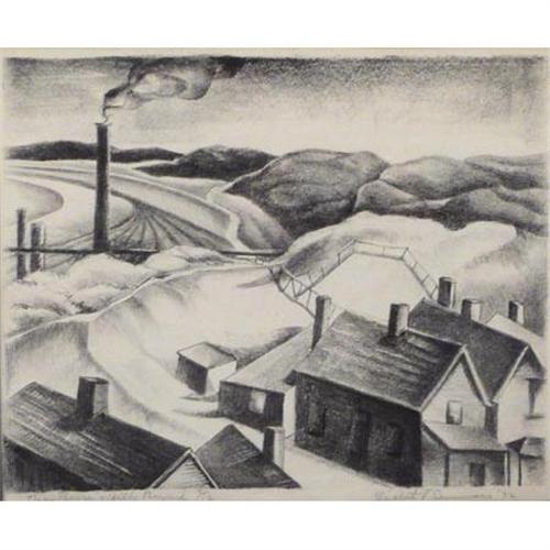 Elizabeth F. Summers "The River & Hills Beyond" 2/12 Lithograph Signed lower right 1932 10" x 12 1/2"