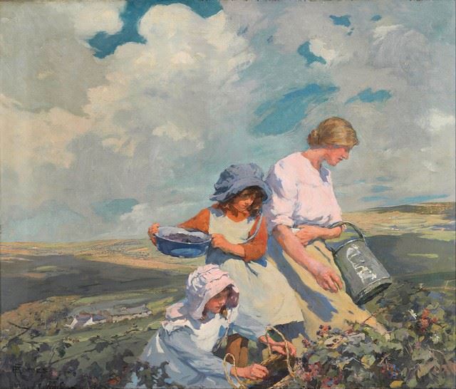 Artist: Elizabeth Forbes - Title: Blackberry Gathering - The Fugitive Slaves - Medium: Fine Art Giclee on Canvas - Image Size: Approximately 27.25 inches x 32 inches - Framed: Unframed on Unstretched Canvas - Biography: Elizabeth Adela Forbes (nee Armstrong; 29 December 1859 - 16 March 1912) was a Canadian painter who was primarily active in the UK. She often featured children in her paintings and School Is Out (painted in Newlyn) is one of her most popular works. She was friends with the artists James Abbott McNeill Whistler and Walter Sickert, both of whom influenced her work. Her etchings in particular are said to show the influence of Whistler.