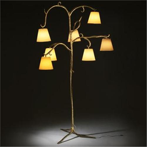 Elizabeth Garouste and Mattia Bonetti<BR>Dawson floor lamp<BR>France, 1995<BR>enameled and gilt wrought iron, silk<BR>52 w x 32 d x 100 h inches<BR>This is the first example of the Dawson floor lamp, and it inspired the subsequent edition by Neotu; this work is unique. Sold with copy of original artist rendering and presentation material.<BR>Provenance: <BR>Private collection, Dawson Place, London<BR>Literature: <BR><i>Elizabeth Garouste & Mattia Bonetti</i>, Staudenmeyer et al., pg. 24 <i>Elizabeth Garouste & Mattia Bonetti: 1981-2001</i>, Vedrenne, ppg. 62-65 <i>Garouste & Bonetti</i>, Buck and Vogt, ppg. 40, 112 <i>Vogue</i>, British Edition, July 1995, ppg. 130-135<BR><BR>Condition of the item is not included in this description. Condition reports are available from Wright upon request. Wright strongly recommends that you review a condition report for each item on which you plan to bid.