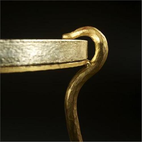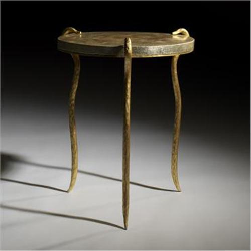 Elizabeth Garouste and Mattia Bonetti<BR>occasional table<BR>France, 1995<BR>gilt iron, silverleaf over ceramic<BR>19.5 w x 19.5 d x 23.75 h inches<BR>This work is unique. Sold with copy of original artist rendering and presentation material.<BR>Provenance: <BR>Private collection, Dawson Place, London<BR>Literature: <BR><i>Elizabeth Garouste & Mattia Bonetti</i>, Staudenmeyer et al., pg. 24 <i>Elizabeth Garouste & Mattia Bonetti: 1981-2001</i>, Vedrenne, ppg. 62-65 <i>Garouste & Bonetti</i>, Buck and Vogt, pg. 112 <i>Vogue</i>, British Edition, July 1995, ppg. 130-135<BR><BR>Condition of the item is not included in this description. Condition reports are available from Wright upon request. Wright strongly recommends that you review a condition report for each item on which you plan to bid.
