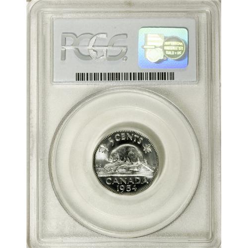 Elizabeth II 5 Cents 1954 SF, KM50, MS66 PCGS, an incre