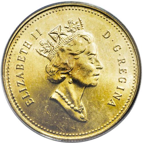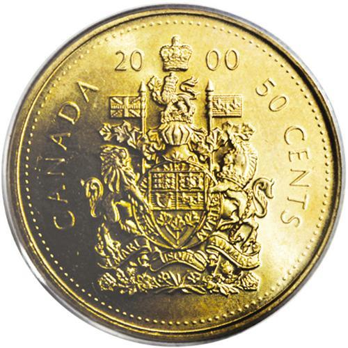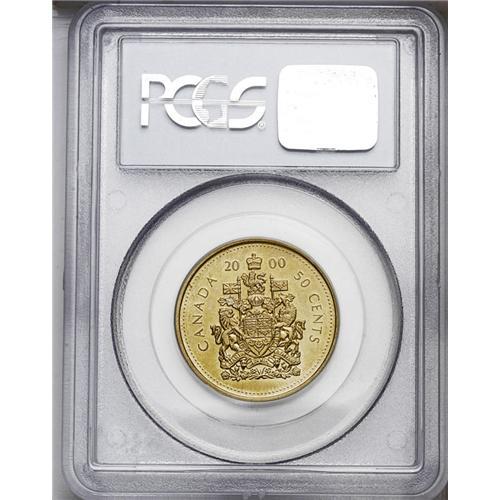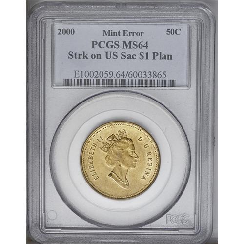 <B>Elizabeth II 50 Cents 2000 struck on a U.S. Sacagawea Dollar planchet,</B></I> MS64 PCGS. Fully brilliant and extremely rare.<BR><I>From the Dominion Collection.</B></I>