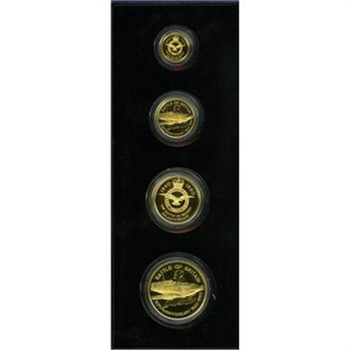 <B>Elizabeth II, Battle of Britain 50th Anniversary Commemorative Four Coin Gold Proof Collection 1990,</B></I> KMPS10, including 10 Pound, KM79, 25 Pound, KM80, 50 Pound, KM81 and 100 Pound, KM82. The coins are all gem proof housed in the original case with certificate. Mintage is listed as 500 sets.<BR><BR><b>Shipping:</b> Coin/Currency (<a target="_blank" href="http://www.heritageauctions.com/common/shipping.php">view shipping information</a>)