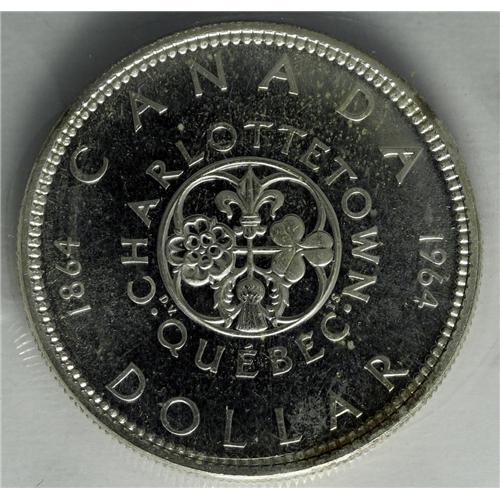 <B>Elizabeth II Dollar 1964 Missing Dot,</B></I> KM58, Prooflike 65 ICCS, well struck with nice mirror-like fields.<BR><I>From the Dominion Collection.</B></I>