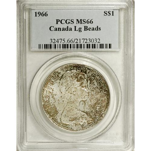 Elizabeth II Dollar 1966 Large Beads, KM64.1, MS66 PCGS