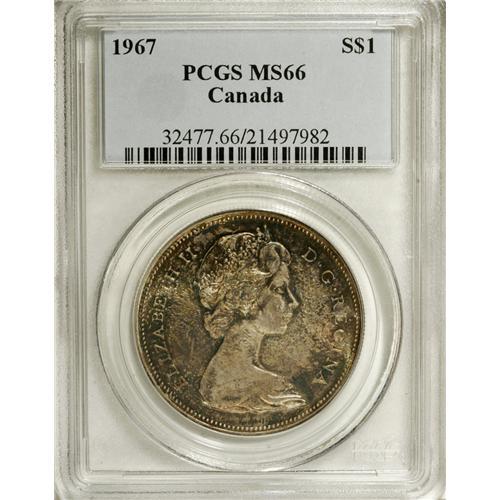 Elizabeth II Dollar 1967, KM70, MS66 PCGS, heavily tone
