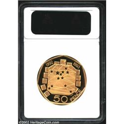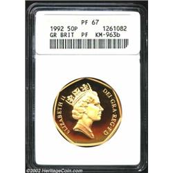 Elizabeth II Gold 50 Pence 1992, KM963b, PF67 ANACS. European Council of Ministers commemorative. Important notice: We expect to be auctioning lots at the rate of 200-250 per hour. Sometimes eBay Premier live bid software cannot keep up with that pace, so we strongly recommend that you place a realistic proxy bid now as insurance to avoid disappointment. Also please note that all Heritage/CAA lots purchased through eBay Premier carry a 20% Buyer's Premium. Please make sure you read the Terms and Conditions.
