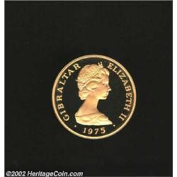 Elizabeth II Gold 50 Pounds 1975, KM8, Proof, lightly patinated with smudges and shiny spots over both sides. Just 750 proofs were minted. Important notice: We expect to be auctioning lots at the rate of 200-250 per hour. Sometimes eBay Premier live bid software cannot keep up with that pace, so we strongly recommend that you place a realistic proxy bid now as insurance to avoid disappointment. Also please note that all Heritage/CAA lots purchased through eBay Premier carry a 20% Buyer's Premium. Please make sure you read the Terms and Conditions.