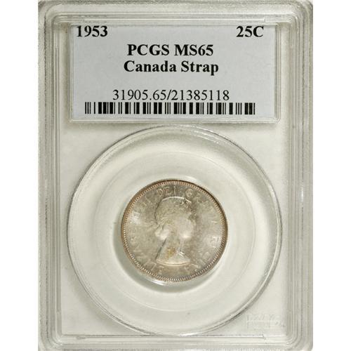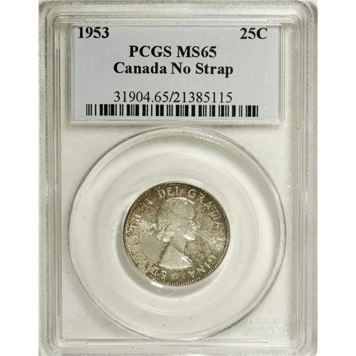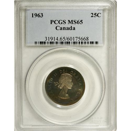 <B>Elizabeth II - Trio of PCGS 25 Cents, </B></I>KM52 1953 NSF MS65, deeply toned, 1953 SF MS65 and 1963 MS65, rich multicolored patina. All are scarce in MS65.<BR><BR><b>Shipping:</b> Coin/Currency (<a target="_blank" href="http://www.heritageauctions.com/common/shipping.php">view shipping information</a>)