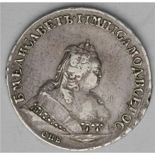 <B>Elizabeth. Rouble 1744-???,</B></I> Bit-256, Uzd-787, VF with light obverse scratches.