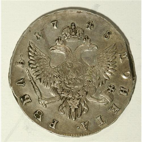 <B>Elizabeth. Rouble 1748 C??,</B></I> Bit-263, about XF with a reverse rim knock.<BR><BR><b>Shipping:</b> Coin/Currency (<a target="_blank" href="http://www.heritageauctions.com/common/shipping.php">view shipping information</a>)