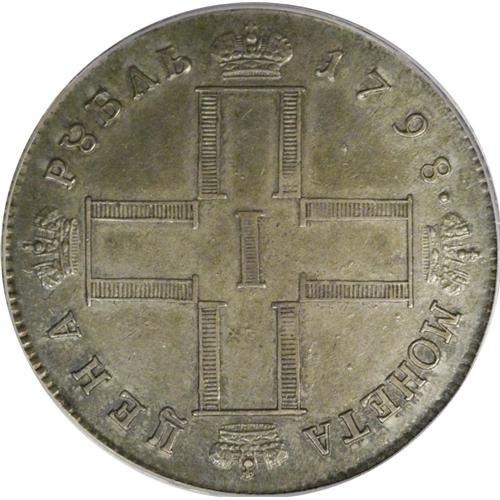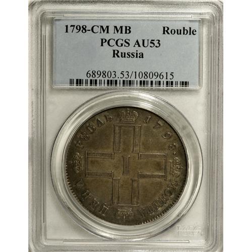 <B>Paul I. Rouble 1798 CM-M?,</B></I> Bit-32, AU53 PCGS. Medium gray toning with a nice strike.<BR><BR><b>Shipping:</b> Coin/Currency (<a target="_blank" href="http://www.heritageauctions.com/common/shipping.php">view shipping information</a>)