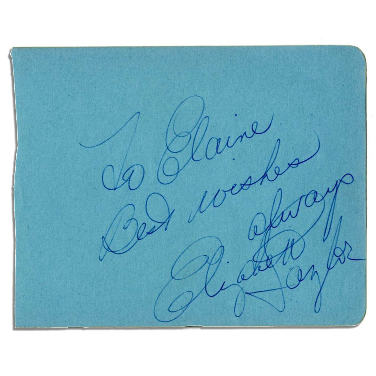 Elizabeth Taylor Signed 5.5'' x 4.5'' Album Page -- ''To Elaine / Best wishes always / Elizabeth Taylor'' -- Fine