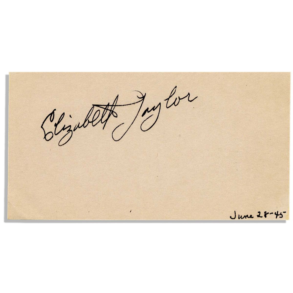 Vintage Elizabeth Taylor signature dated 28 June 1945 and signed clearly on a pristine piece of 5'' x 3'' paper. Fine condition.