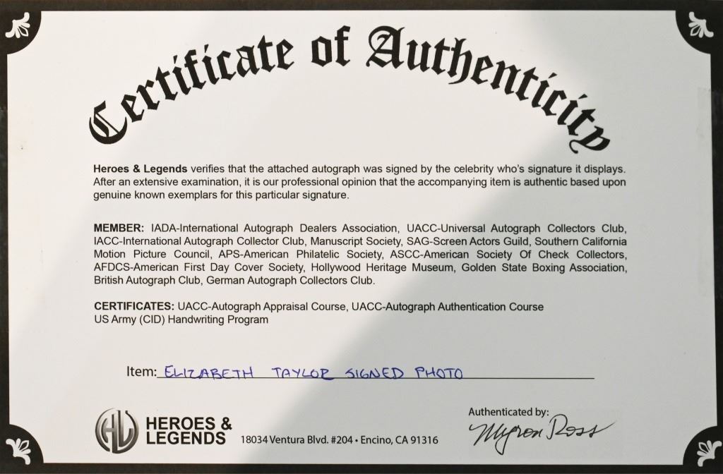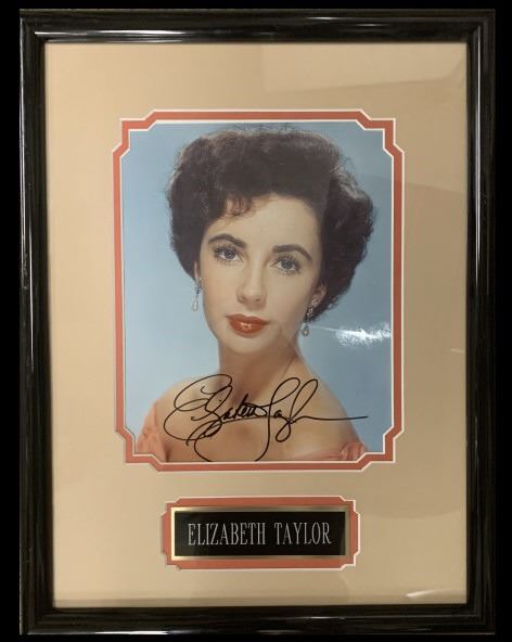 Elizabeth Taylor signed photo in custom frame. 13x17 inches. The signed photo is 8 x 10 inches. HL2857