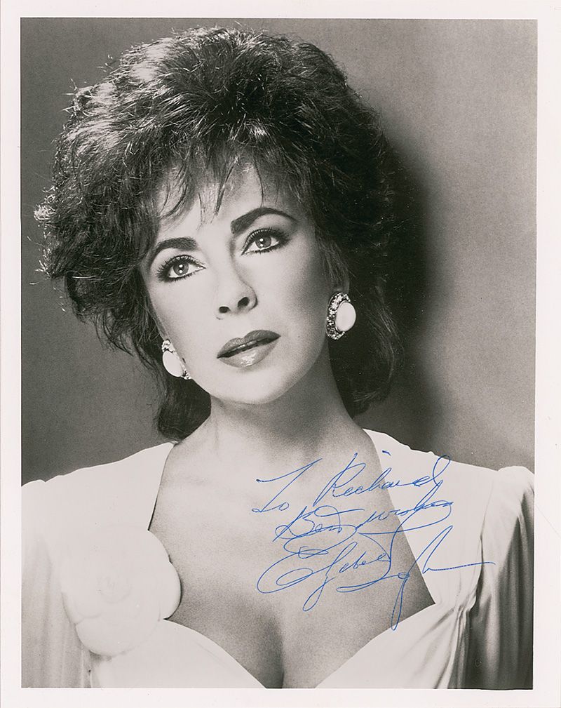 Superb satin-finish 8 x 10 photo, signed and inscribed in blue ballpoint “To Richard, Best wishes, Elizabeth Taylor.” In fine condition.