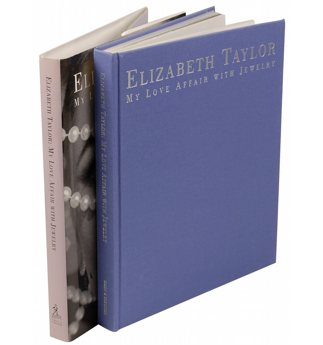 Signed book: My Love Affair with Jewelry. First edition. NY: Simon & Schuster, 2002. Hardcover with dustjacket, 10 x 12.5, 239 pages. Signed and inscribed on the title page to Dr. Arnold Klein: "My Beloved Arnie / I love you more than I could tell-I feel you have saved my fading life. I love and thank you forever, Your Elizabeth T." In fine condition, with a few pages separated from spine. Klein, the noted Beverly Hills dermatologist, philanthropist, and ultimate Hollywood insider, was for many years a close personal friend and confidant to Taylor. It took Christies two days to conduct the sale of Elizabeth Taylor's jewelry in 2011 and it brought an astounding $137 million. This more than doubled the previous record for a single owner's jewelry auction held by the Duchess of Windsor.