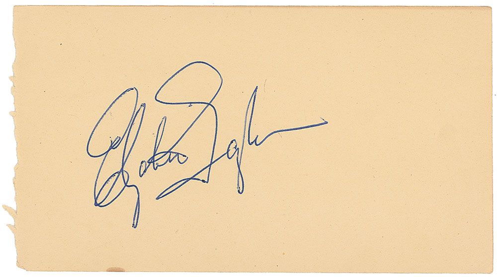 Ballpoint signature, “Elizabeth Taylor,” on an off-white 5 x 2.75 album page. In fine condition.