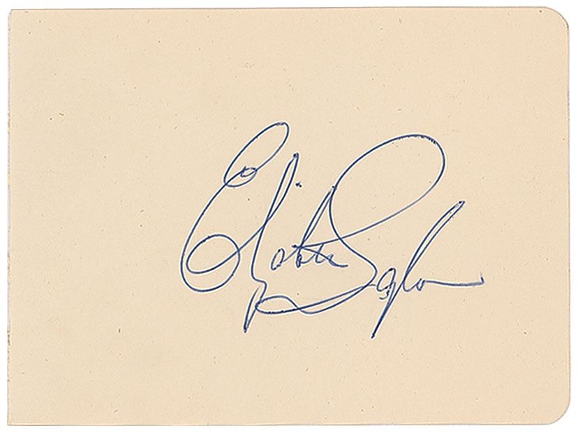 Large vintage ballpoint signature, "Elizabeth Taylor,” on an off-white 5.5 x 4 album page. In very fine condition.
