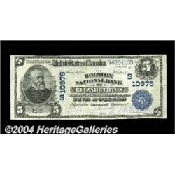 Elizabethton, TN - $5 1902 Plain Back Fr. 606 Holston NB of Elizabethton Ch. # (S)10976This scarce Carter County bank is represented by just eight large size notes in the census, and this lovely mid-grade example is a great looking note with nice signatures and original paper quality. Very Fine+. <BR><BR><B>Important notice:</B> Heritage usually auctions material at the rate of 200-250 lots per hour. On some occasions eBay Live bid software or the Internet may not be able to keep up with the pace of the auction. We recommend placing a realistic absentee bid now as insurance to avoid disappointment. Occasionally the auctioneer may eliminate or reject an eBay Live bid, and the auctioneer may also reopen a lot after the close of the eBay live bidding (usually because we missed an audience bid), and may reject your bid even if it shows you as the winning bidder. By bidding via eBay Live, you agree that Heritage may award the lot to another bidder at its sole discretion under the circumstances described above or any other reasonable circumstances. Since eBay bids are not shown to us until we open the lot on the floor, we treat those bids just like floor bids. In most cases the floor responds before the eBay bid is presented to us, due to Internet lag time, so for consistency we have made it a policy that floor bids are always considered first over tie eBay live bids. Also please note that all Heritage lots purchased through eBay Live carry a 20% Buyer's Premium. Please make sure you read the Terms and Conditions before you bid. <BR><BR><B>IMPORTANT ANNOUNCEMENT ABOUT RESERVES:</B> Heritage now divulges all reserves on its web site 7 days before every auction. If you want to know whether the reserve on this lot has been met, and if not, what the reserve amount is, please visit this lot page on the HeritageCoin.com web site, or email: bid@HeritageGalleries.com