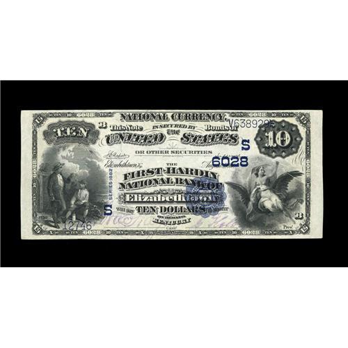 <B>Elizabethtown, KY</B></I> - $10 1882 Value Back Fr. 579 <B>The First-Hardin NB</B></I> Ch. # (S)6028<BR>A Value Back with utterly incredible margins, as any collector who has ever hunted for a well margined example of the type can attest. <B>Extremely Fine,</B></I> with purple signatures, a premium example sure to see some spirited bidding.