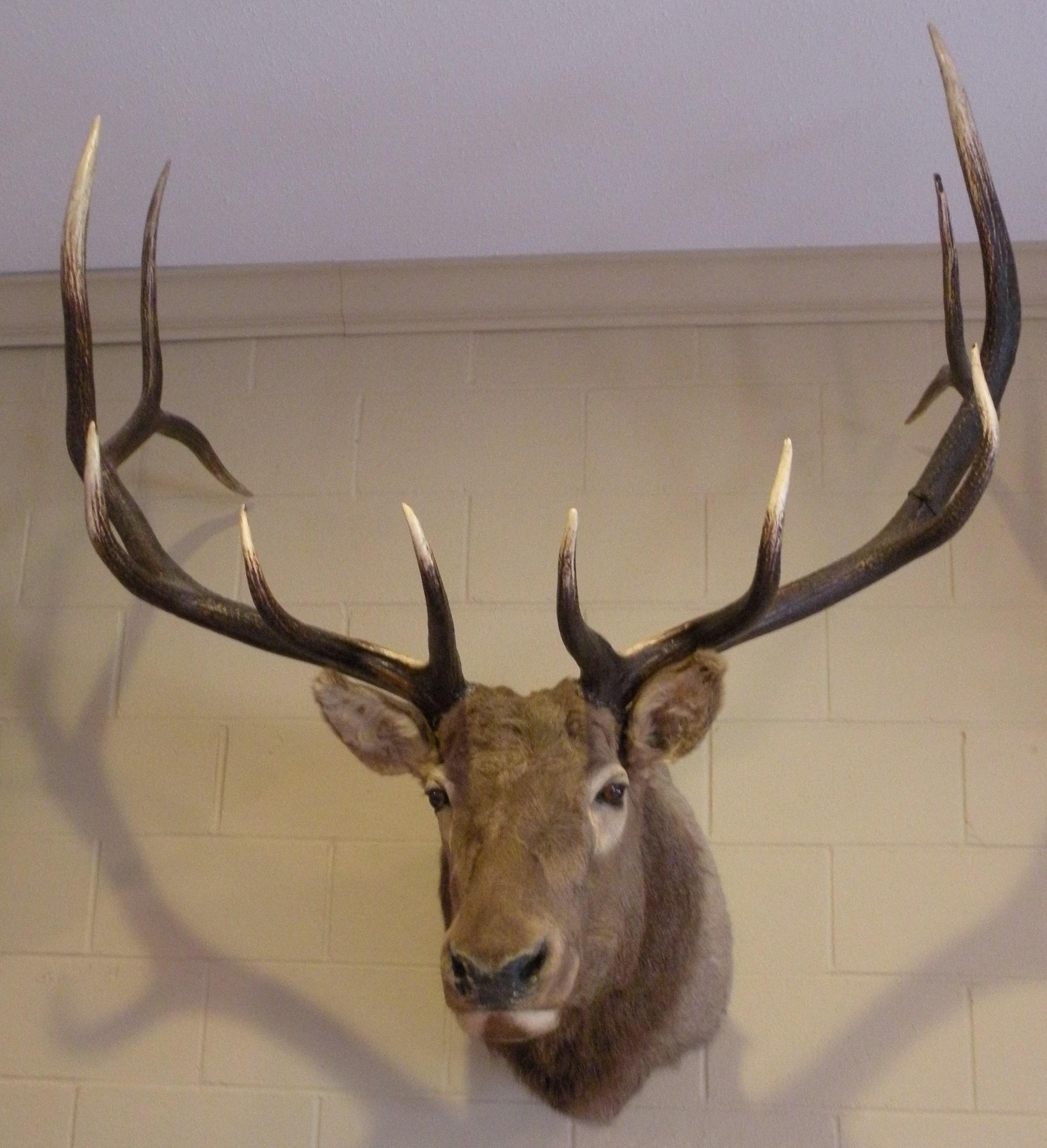 42" wall to nose, 51" spread, 54" bottom of neck to top of antler (height) Wyoming game tag #G11285 YR. 1967