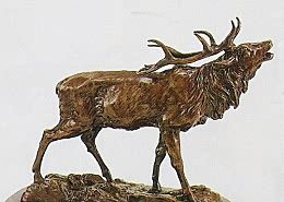 "Elk" Bronze Sculpture - After Mene - Museum Brown Finish - Mounted On A Fine Italian Marble Base - Beautifully Detailed - Signed - Mint Condition - 16"H X 19"W - Lost Wax Cast Bronze
