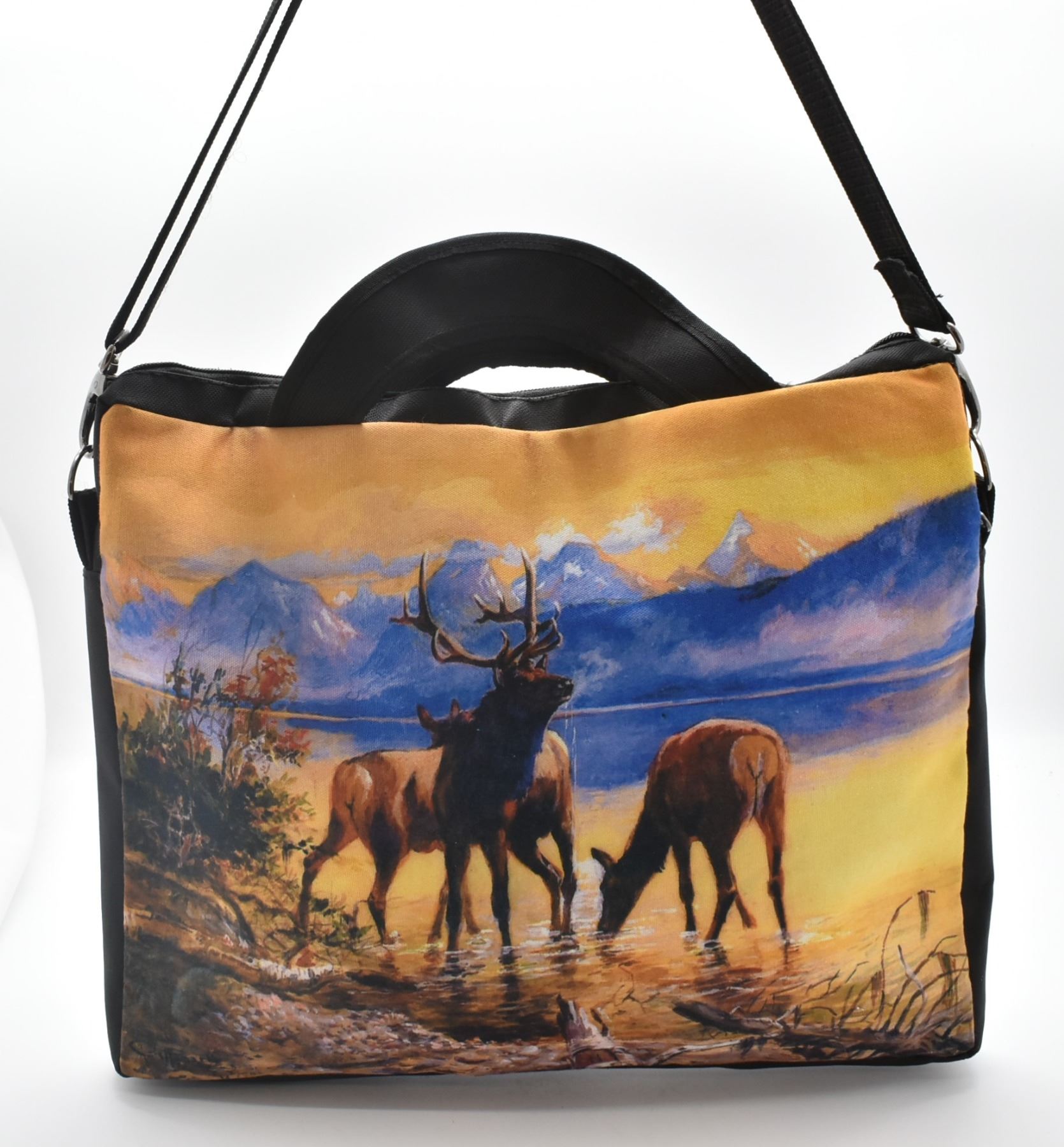 Elk Design Lap Top Carrying Bag, polyester, adjustable strap, measures 13'' x 16'', zippered closure and double handles