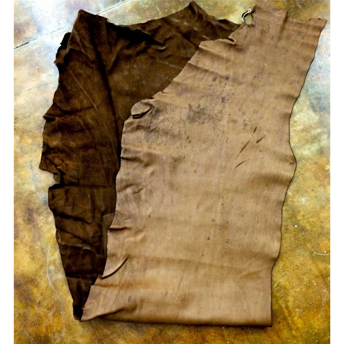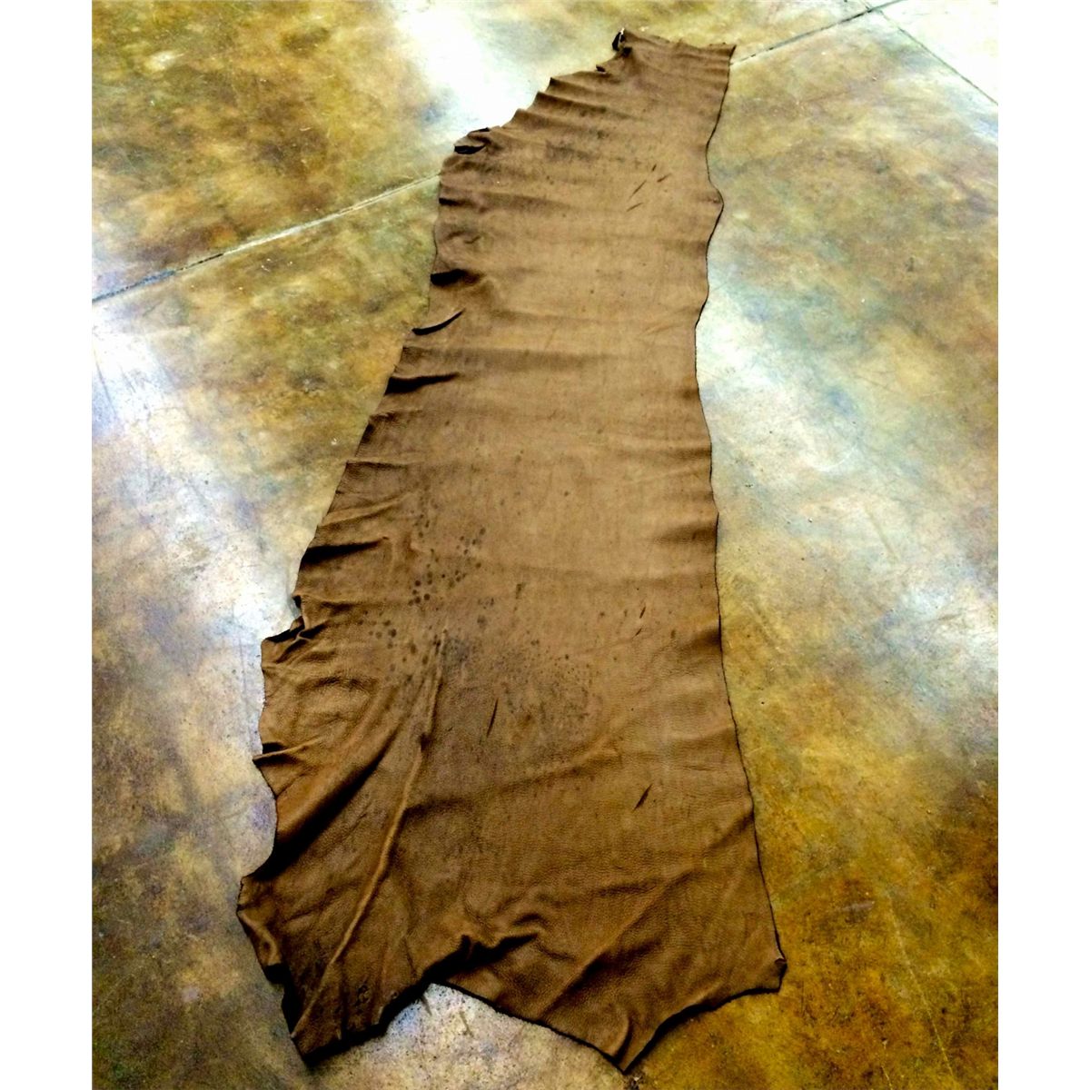Approximately 10 sq ft of brown elk hide. Tanned and ready for use.