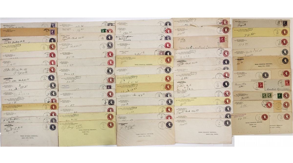 c1919 This lot includes postal covers from Elk County towns, including Tuscarora (Est. 1871) and Midas (DPO). Covers are in good condition with a mix of large and small cancellation circles.These are all part of former Nevada State Treasurer Dan Franks' collection. - HKA#66030
